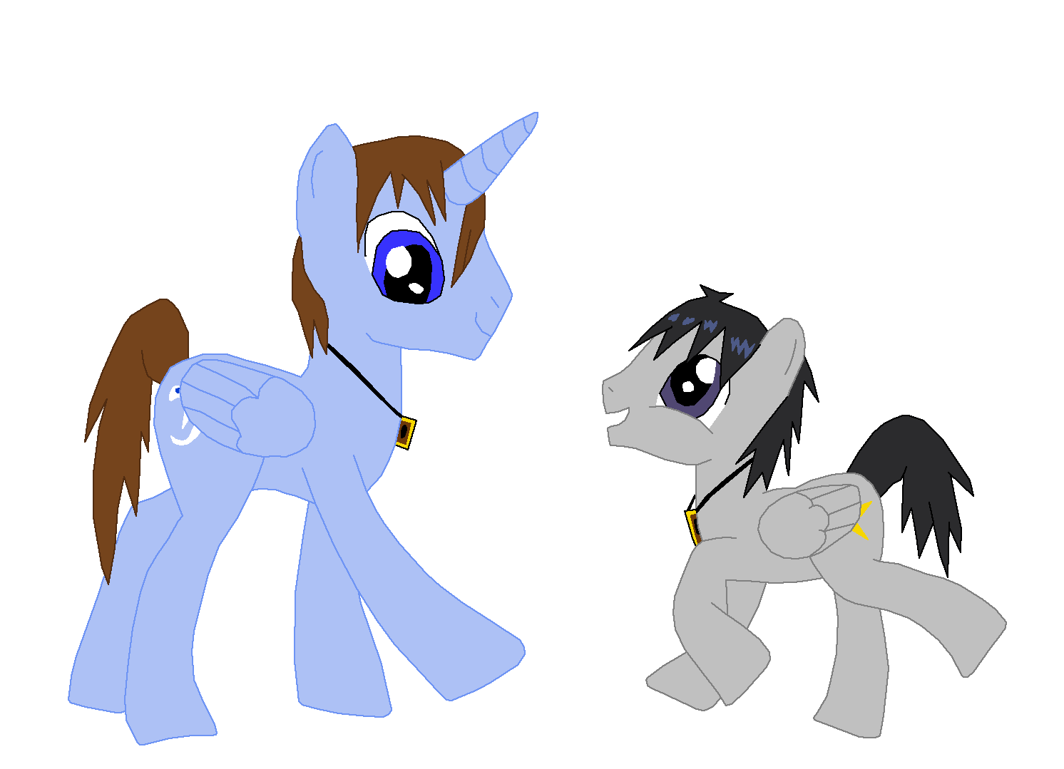 Made Seto a Alicorn, because why not. Mokuba is a Pegasus because I remembered that one scene where he was little and riding a blue eyes, so I thought why not make he fly? Seto is blue, but I don’t know why nor do I know why I gave Mokuba a Star cutie mark. Seto’s is a badly done blues white dragon.